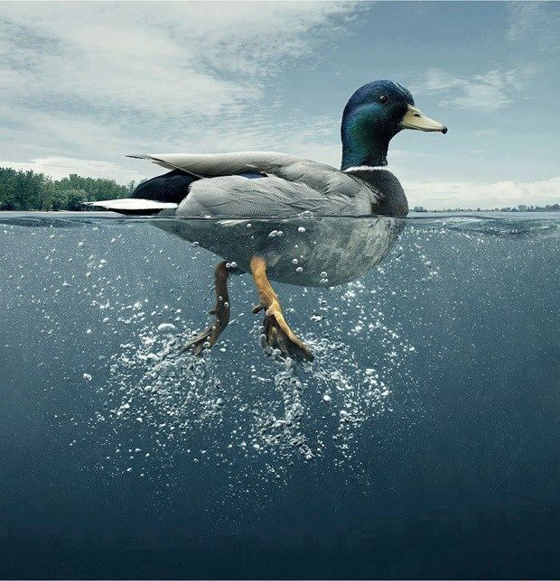 - Dạ vì cháu thấy con vịt chân ngắn cũng bơi qua được mà!